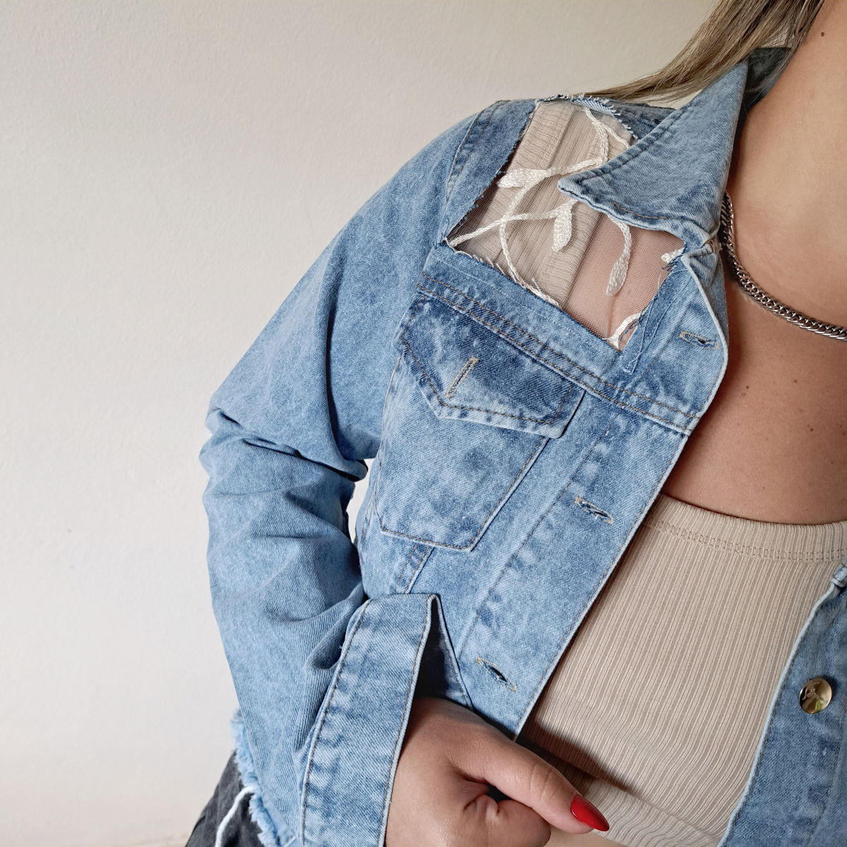 CAMPERA JEAN CON ROTURAS ABAJO CELESTES RECTA TALLE ÙNICO .