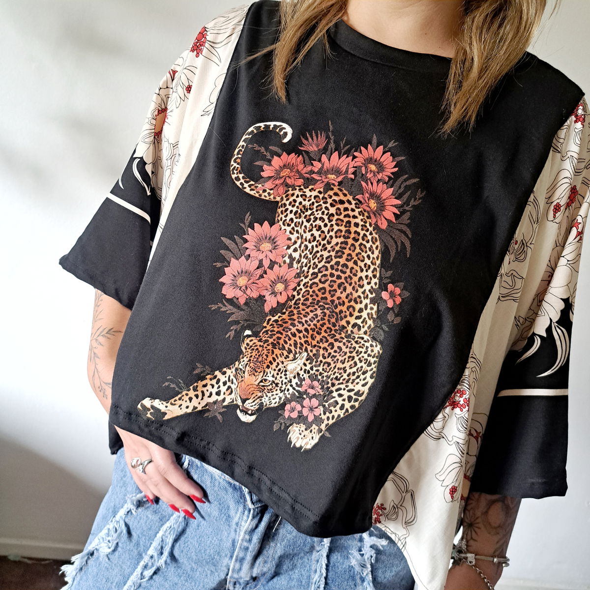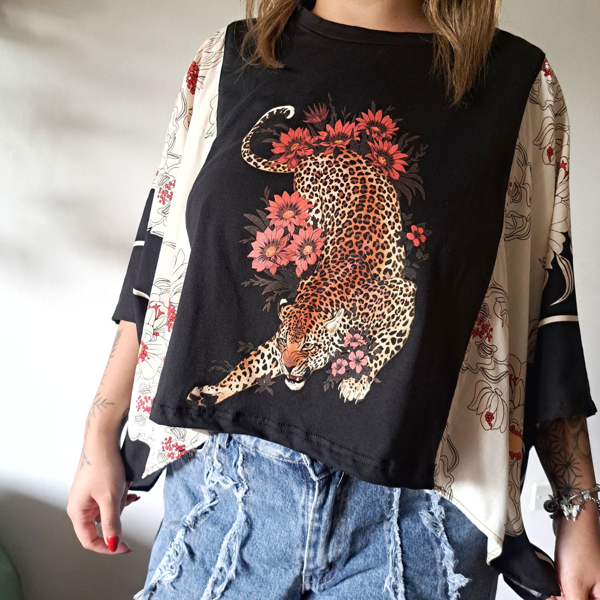 REMERAS TALLE ÙNICO , CON DISEÑOS DE MANGAS EN TELAS CON ESTAMPAS .