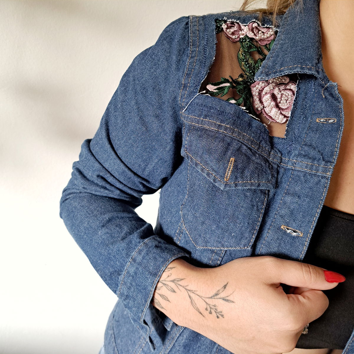 EDICIÒN : CADA PRENDA DARFLOWERSDENIM ES INTERVENIDA DE MANERA INDIVIDUAL , LA COMPOSICIÒN DE CADA PIEZA NO SE REPITE. POR ESO CADA PRENDA LLEVA UN NÙMERO DE EDICION .